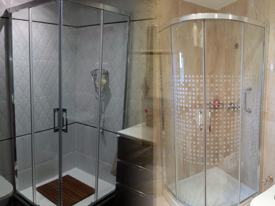 ducha o bañera, con diferentes acabados y decorados en el vidrio o la pasta acrílica.